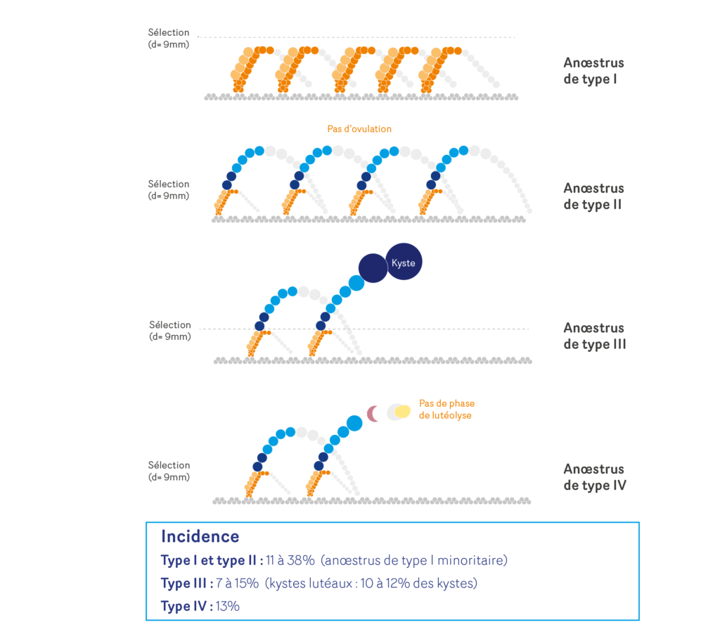 Le classement des différents types d’anœstrus est défini en fonction du stade de la vague folliculaire :