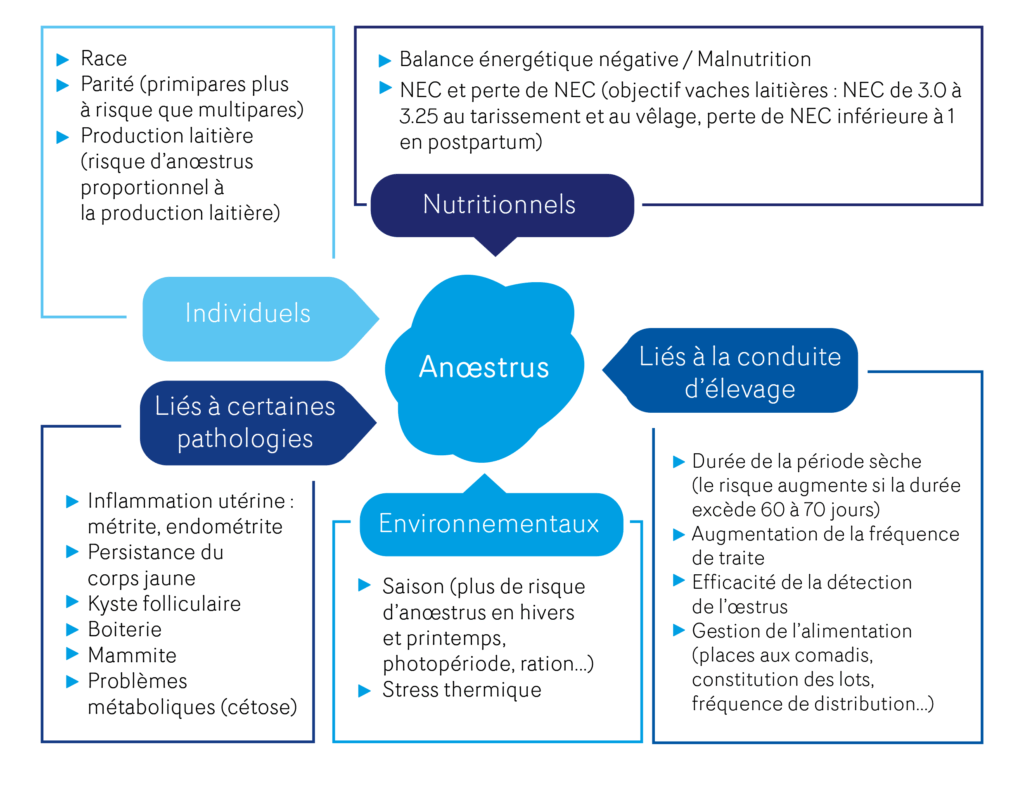 Anœstrus laisse sous-entendre l’absence d’œstrus donc l’absence de chaleurs. En réalité, il faut plutôt comprendre l’absence d’ovulation. La résolution des facteurs de risque de l’anœstrus, et notamment du déficit énergétique, doit être une priorité.