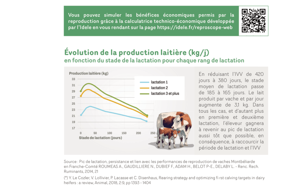 En élevage laitier, la reproduction doit permettre de maximiser la production laitière en revenant au pic de lactation suffisamment tôt sans coût de renouvellement trop important :
